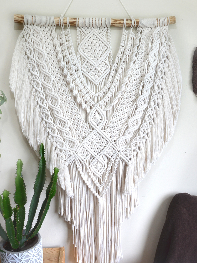 wysokość makramy: 100 cm - Materiał: sznurek bawełniany 3mm i naturalna gałąź
