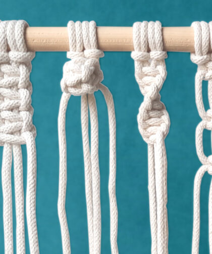Pracę nad każdą makramą, niezależnie od jej charakteru, rozpoczynamy od zawieszenia sznurków na kijku, gałęzi lub innym sznurku. Do tego celu służą tzw. węzły mocujące. …