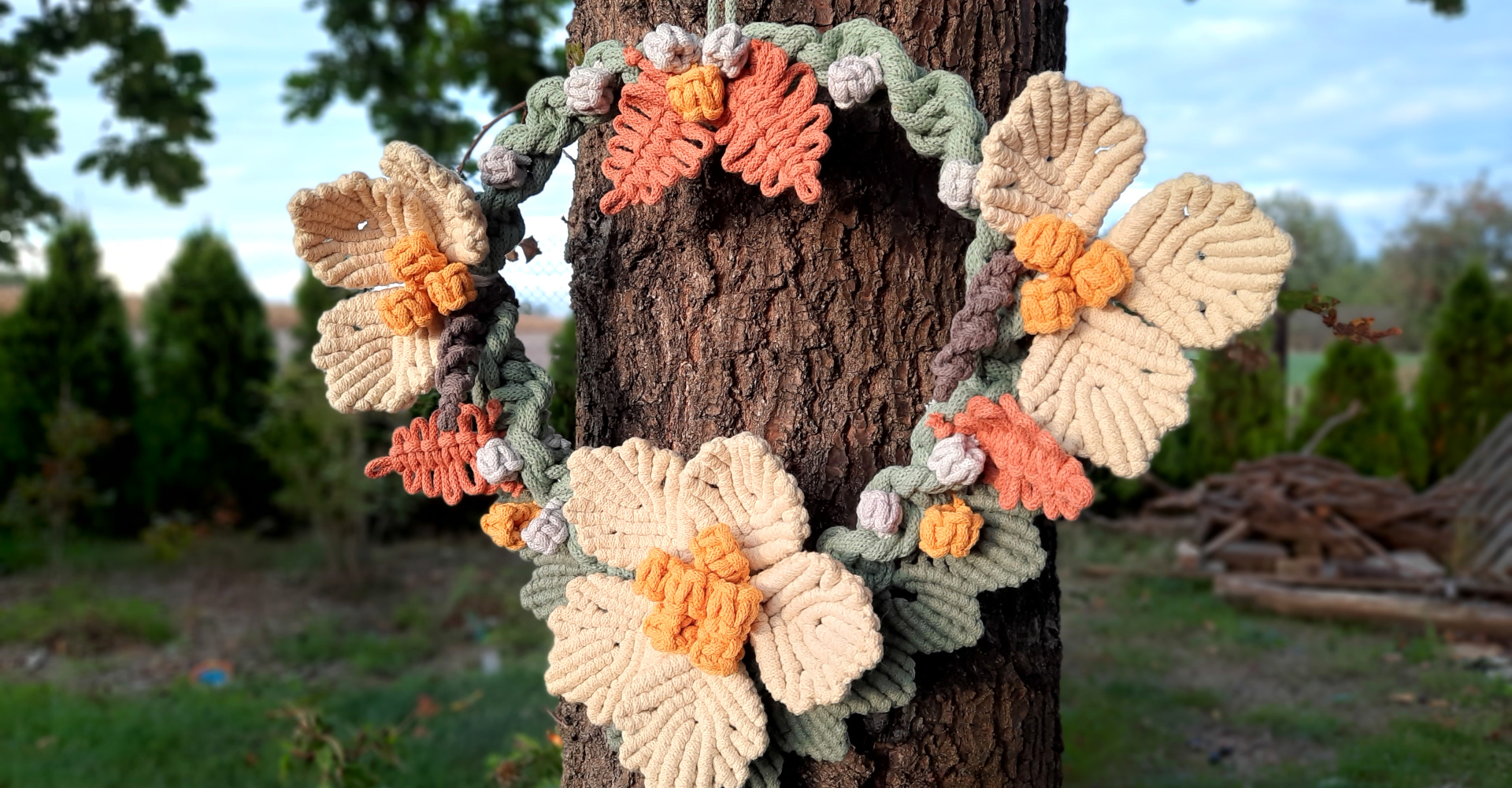Aby jakoś uczcić ten dzień przygotowałam, tak jak kiedyś to robiono, wieniec – co prawda nie z prawdziwych kwiatów ale z za to makramowych.