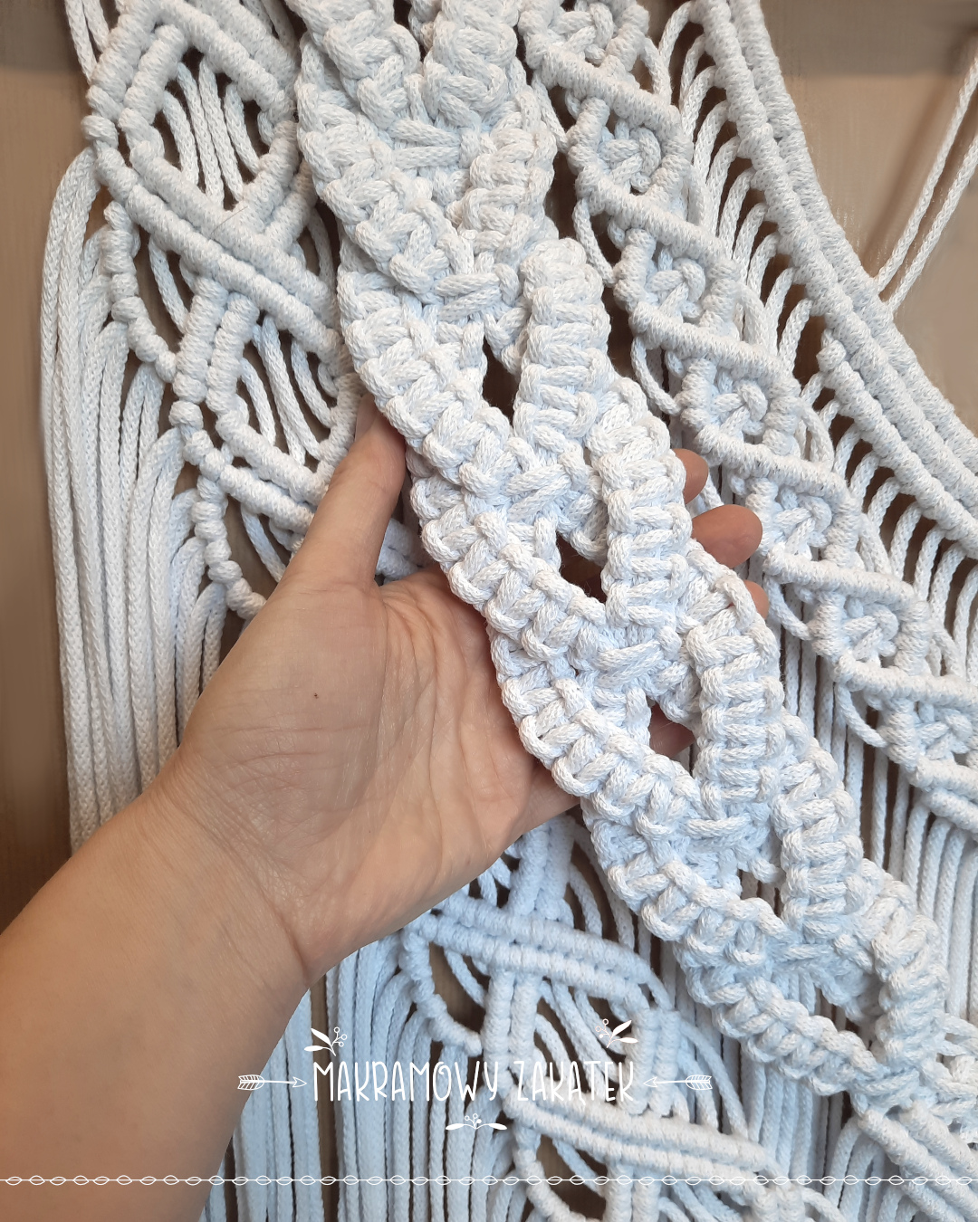 Makrama wykonana ręcznie z materiałów w 100% naturalnych