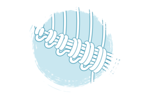 Rzędy węzłów żebrowych możemy wiązać w prawo i w lewo – w zależności od tego, w którą stroną skierujemy sznurek wiodący.